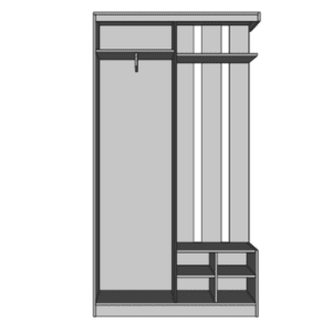 Tolóajtóval, vállfatartóval rendelkezik.