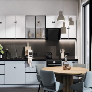 A termék tartalmazza, a szerelvényeket, munkalapot, takarólécet, felfogatást. Nem tartalmaz takarópanelt, vízzárót, munkalap toldót-zárót, és a felső elemek falra szereléséhez tiplit, csavart.